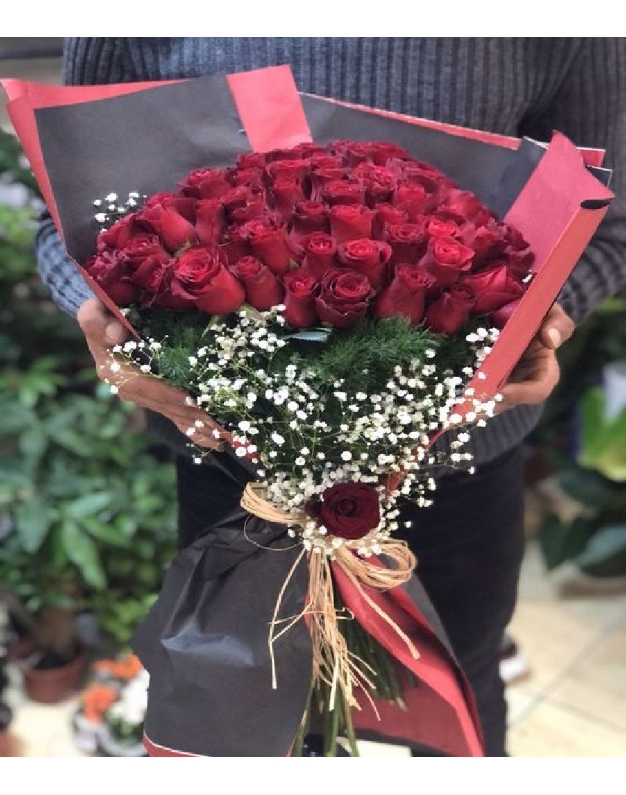 60 Adet Kırmızı Gül... Yaklaşık ürün yüksekliği 60 cm'dir.