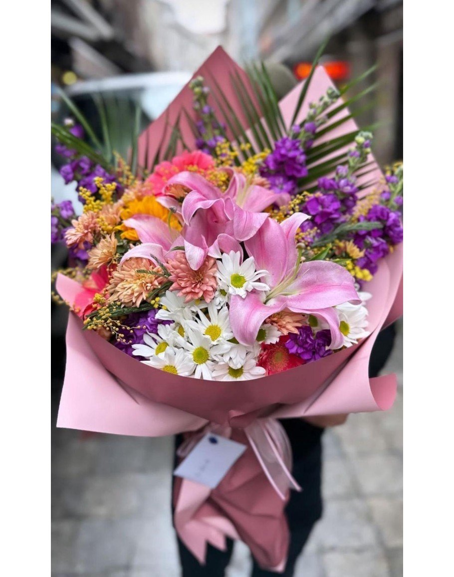 Beyaz Papatyalar ve Pembe Çiçekler Buketi