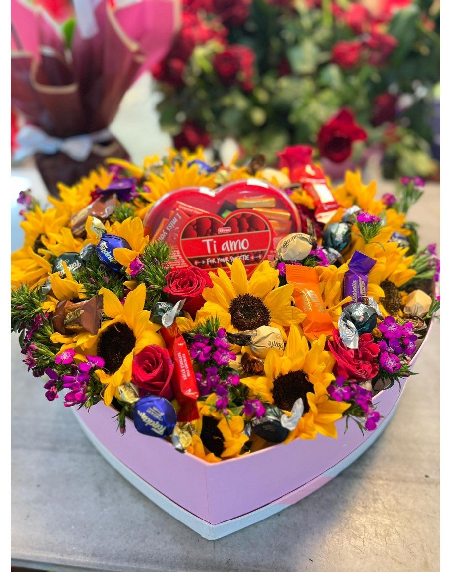 Kalpli Kutuda Çikolata ve Çiçekler