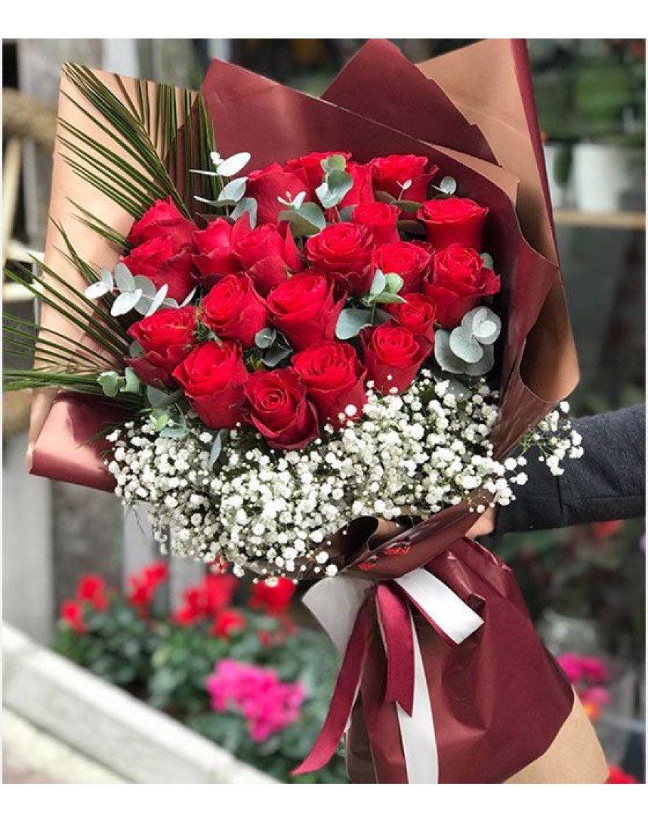 23 Adet Cipsofilyalı Kırmızı Gül Buketi